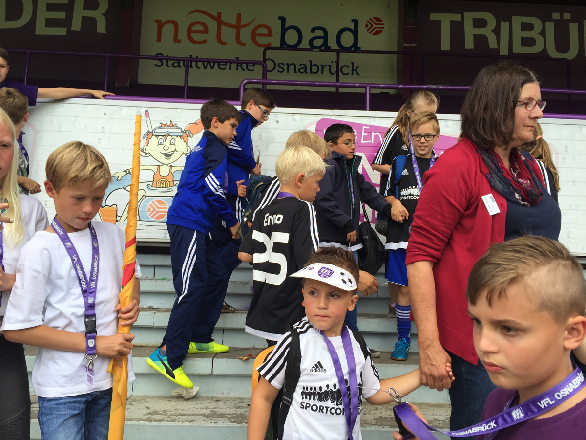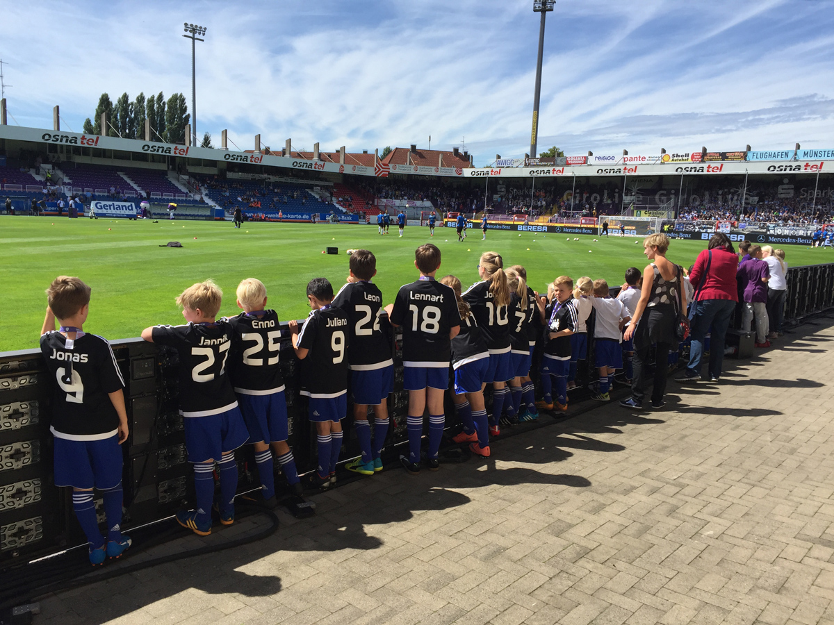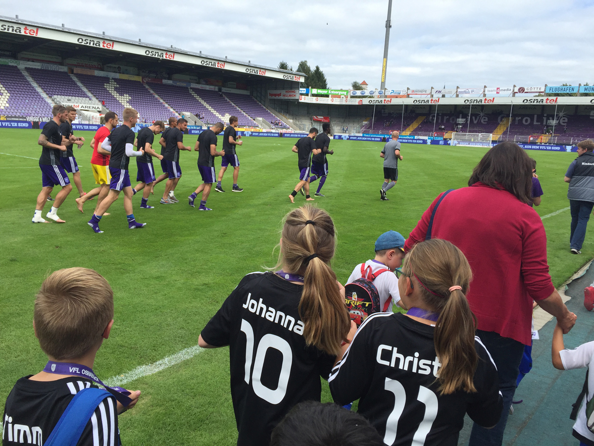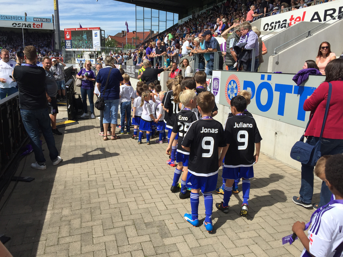 Nach dem Spiel durften unsere Kinder nocheinmal den Osnabrücker Spielern beim Auslaufen aufmunternde Worte zurufen und grüßen - dann war der aufregende Tag auch zuende.