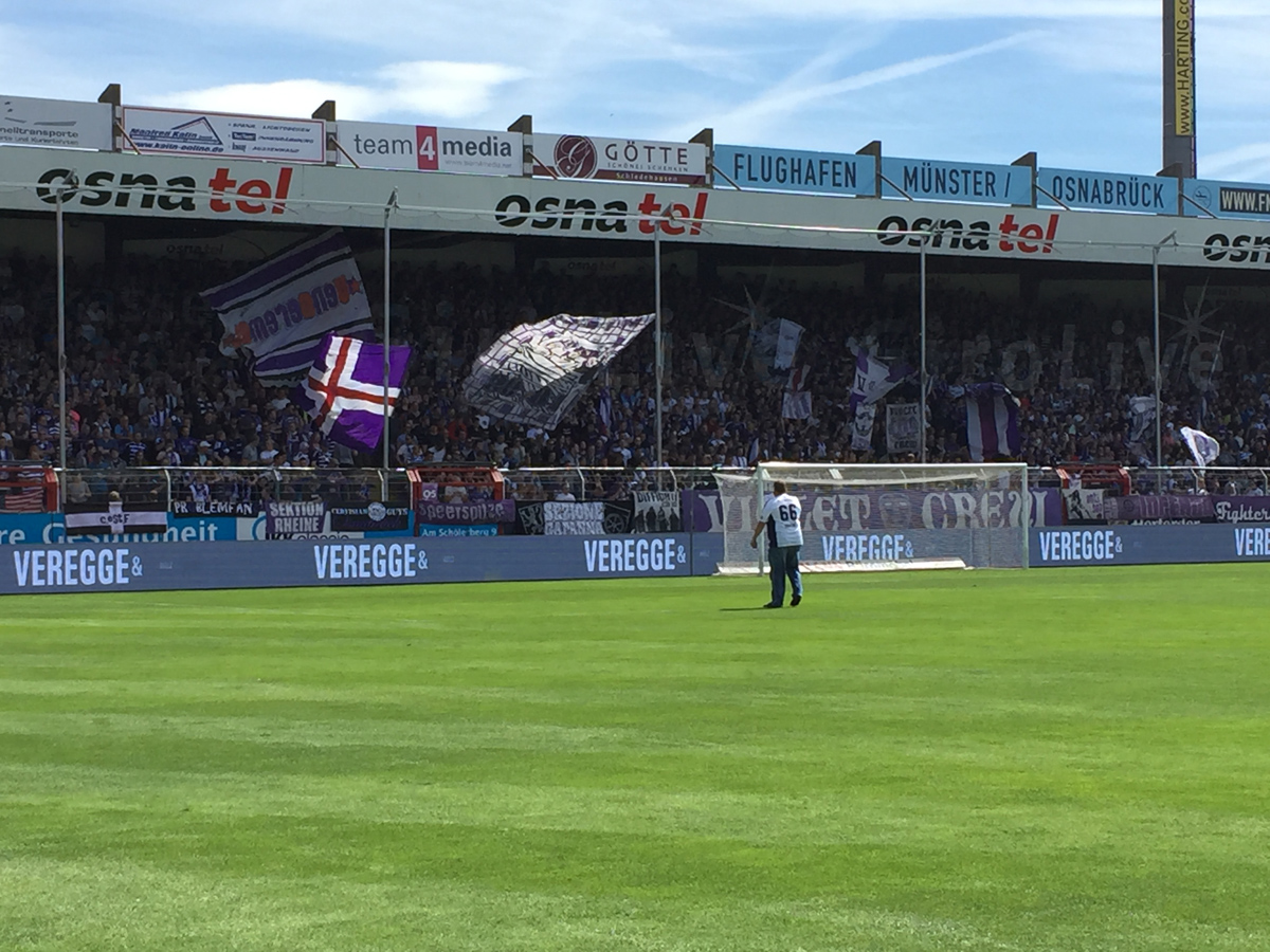 Julia, Johanna, Christin, Timm, Nico, Leon, Lennart, Enno, Jannik, Jonas und Juliano waren hautnah bei der supertollen Stimmung und den sehr lauten Fangesängen in Osnabrück dabei.