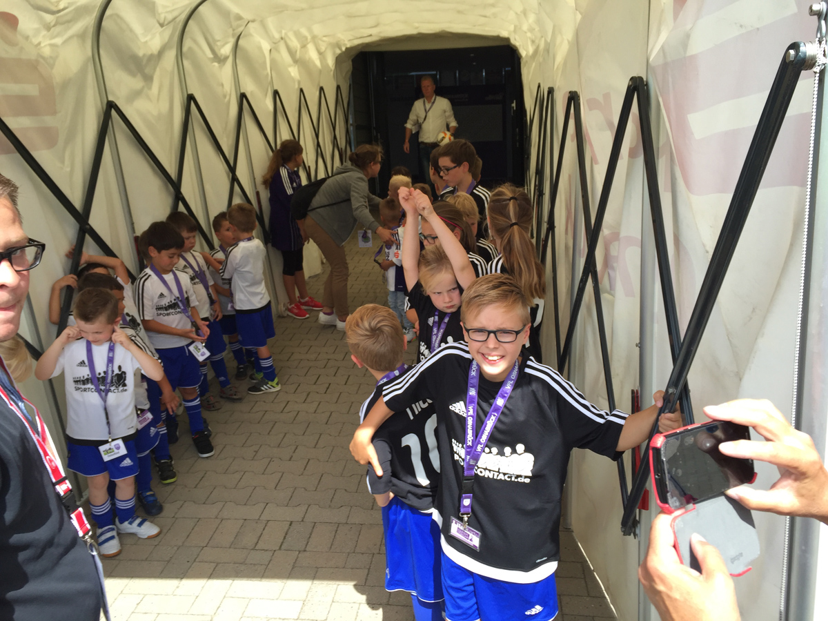 "Wow, ist das cool hier!" meinte Timm, als er das Stadion mit den restlichen Kindern betrat. Schließlich durfte er mit den anderen Nachwuchskids die Profis der beiden Teams, direkt vom Spielfeldrand aus, beim Aufwärmen beobachten.