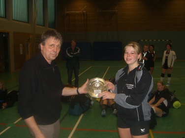 Dort hatten die Damen des TV Jahn Rheine aber anscheinend ihr Pulver verschossen. Schnell gingen die Spielerinnen der VSG Ibbenbüren über 8:3 bis auf 17:7 in Führung und schlossen den Durchgang konsequent mit 25:9 ab. Da auch das Endspiel lediglich über zwei ausgespielte Sätze verlief benötigten die Damen aus Rheine im zweiten Durchgang einen noch höheren Sieg um doch noch den Pokalsieg feiern zu können. Stattdessen gab auch hier die VSG Ibbenbüren bis zum 20:17 den Ton an, ehe einige Konzentrationsschwächen doch noch den ersten Satzverlust bei diesem Turnier mit 23:25 bedeuteten, der aber am Gewinn des Kreismeistertitels für die VSG Ibbenbüren nichts mehr ändern konnte.