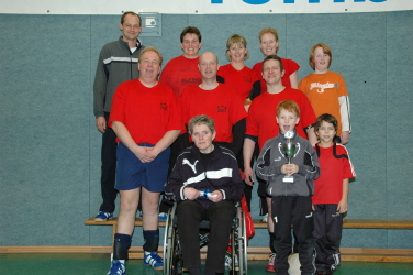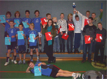 Der Vorjahressieger „No Risk No Fun“ spielte sich nach einem spannenden Turnier auch in diesem Jahr an die Spitze des Silvester-Turniers in der Ludgerus-Sporthalle. Den Spielerinnen und Spielern dieser Mannschaft überreichte Georg Tumbrink am Ende den begehrten "Autohaus-Tumbrink-Pokal“.